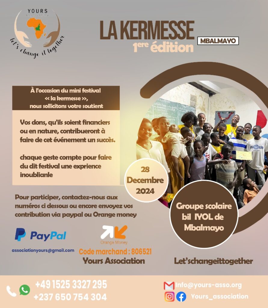 Yours association, association à but non lucratif, prépare avec passion la [1ère édition] de son festival ,,La Kermesse,, un événement dédié à une communion multisociale et la promotion du vivre ensemble.